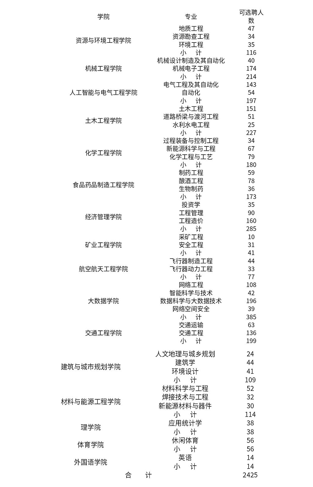 三、2026屆畢業(yè)生專業(yè)及可選聘人數(shù)