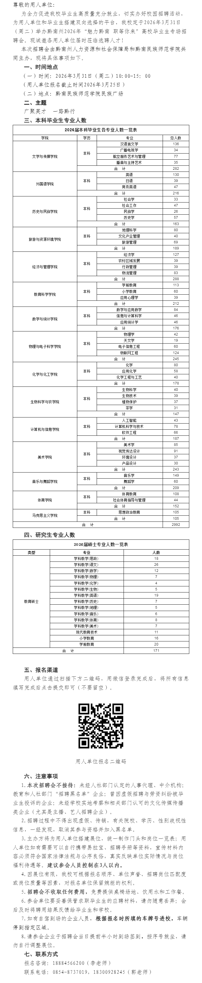 黔南民族師范學(xué)院2026屆畢業(yè)生“魅力黔南 職等你來”高校畢業(yè)生專場(chǎng)招聘會(huì)邀請(qǐng)函